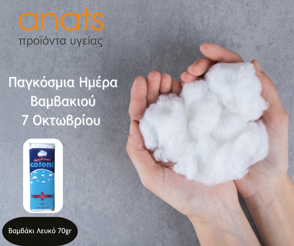Η Anats S.A., με μακρά εμπειρία στην προμήθεια ιατροτεχνολογικών προϊόντων και αναλωσίμων, αναγνωρίζει τη σημασία του βαμβακιού ως βασικού υλικού φροντίδας και διαθέτει μια πλήρη γκάμα προϊόντων υψηλής ποιότητας που καλύπτουν τις ανάγκες επαγγελματιών υγείας, φαρμακείων αλλά και νοσηλευτικών μονάδων.